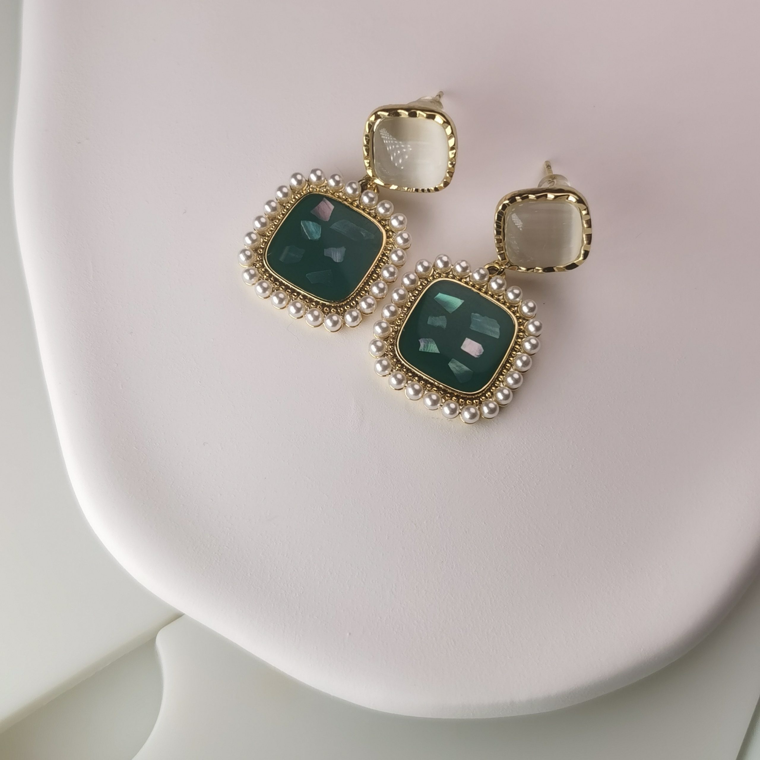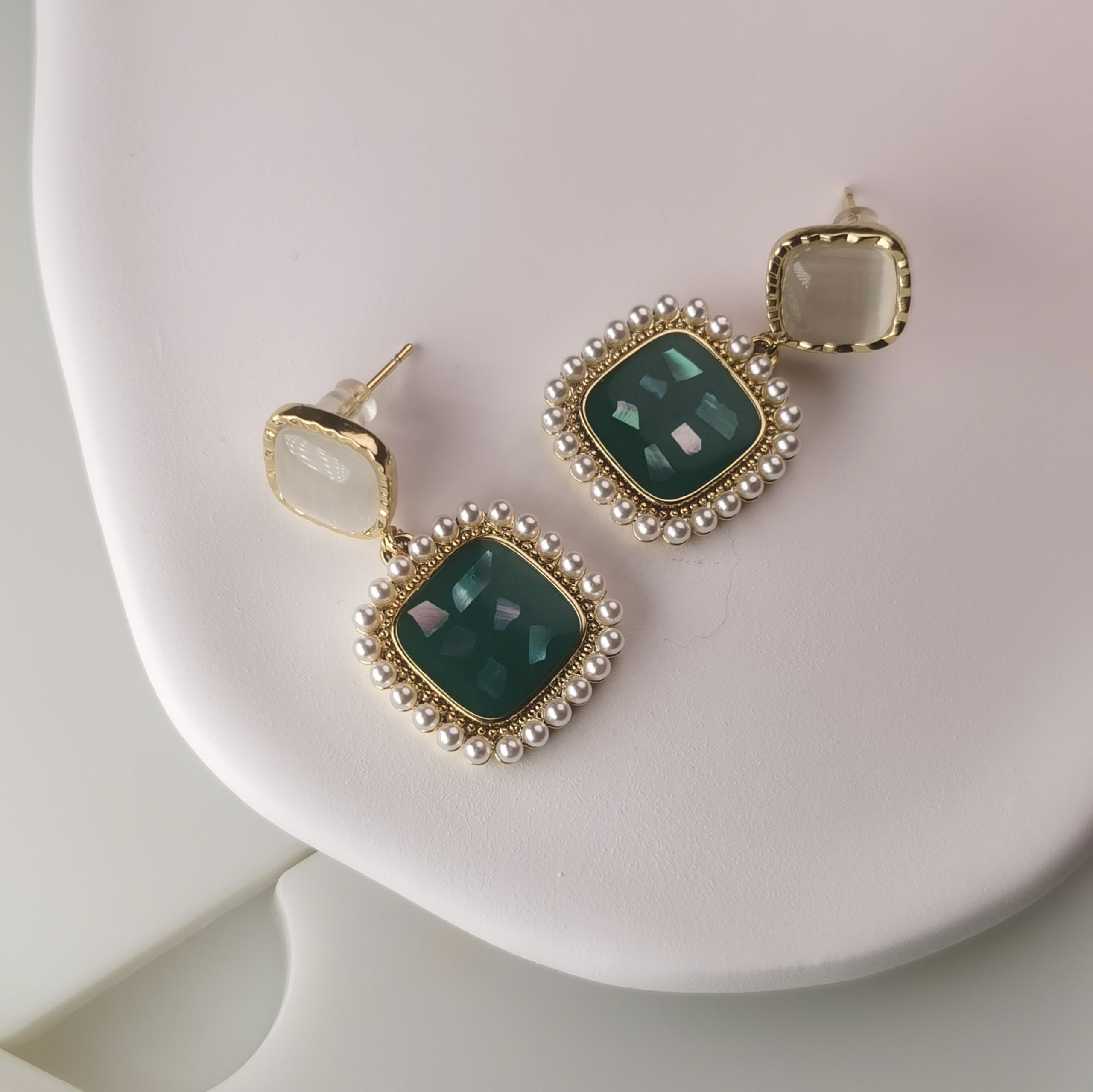 French Vintage Style Earrings, Elegantly Square-set Pearls